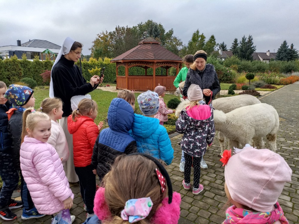 Spotkanie Pszczółek z alpakami Alpaki to takie sympatyczne zwierzęta, że aż chciało się do nich przytulić. Pierwszego października nasze przedszkole odwiedził Henio i Miki. Były słodkie… Zresztą sami zobaczcie. IMG-20211001-WA0004 Zdjęcie 4 z 8