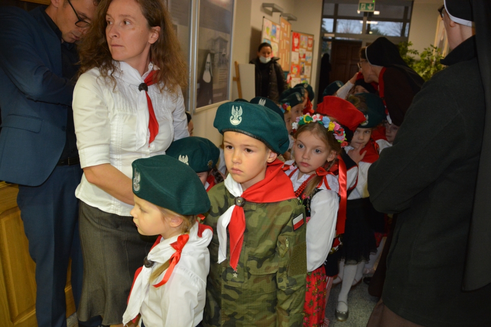 9 listopada 2021 r. grupa Pszczółek zaprosiła na przedstawienie wszystkie dzieci z Przedszkola, Gości oraz Pracowników. Mogliśmy usłyszeć piękne pieśni patriotyczne, wiersze oraz zobaczyć taniec. Dziękujemy za to, że mogliśmy w tak głęboki sposób zatrzymać się i ucieszyć, że jesteśmy Polakami. Życzymy, aby dla każdego Przedszkolaka i największą miłością po Bogu, była Polska.